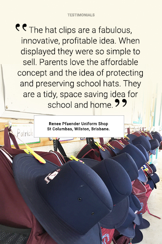 “The hat clips are a fabulous, innovative, profitable idea. When displayed they were so simple to sell. Parents love the affordable concept and the idea of protecting and preserving school hats. They are a tidy, space saving idea for school and home.”